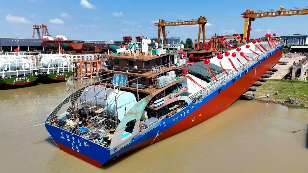 位于宜昌海事局枝江海事处辖区的宜昌船舶工业园,在“两新”政策带动下,船舶建造订单井喷,新建船舶陆续下水。今年以来,该处已成功维护51艘船舶完成试航并成功交付,其中营运船舶中80%以上为新能源船舶,涵盖全国首艘130型甲醇柴油双燃料集散两用船、长江流域首艘纯电动多功能环保船等多种类型。以“拆旧”促“焕新”的良性循环,正有力驱动长江航运结构优化与绿色升级。