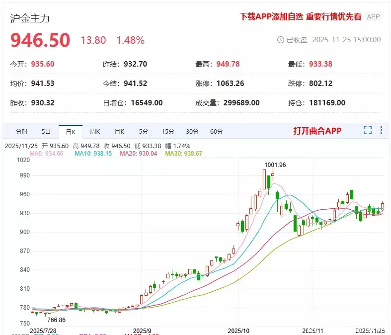 重要的是,降息押注概率向上,利好黄金价格的走势。日内收盘,沪金上涨1.48%,报收946.5元/克。